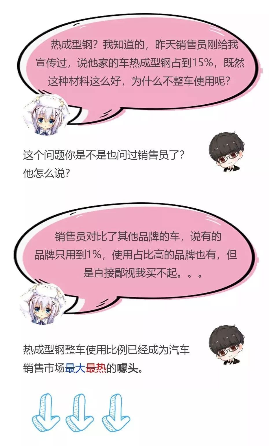銷售小哥有一點倒是沒說錯,要是整車使用熱成型鋼確實買不起。如果你看到宣傳說使用了60%的熱成型鋼,售價卻只有十幾萬,請繞道。