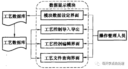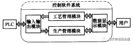 件回路端的可編程序控制器(PLC) 和生產(chǎn)管理人員。輸人輸出模塊的作用是接受工藝管理模塊規(guī)劃的淬火加工工藝,并將這些工藝信息轉(zhuǎn)化為數(shù)據(jù)源形式發(fā)送給可編程序控制器(PLC) , 同時(shí)接收可編程序控制器(PLC) 端的控制狀態(tài)信息,集中發(fā)送給生產(chǎn)管理模塊使用。數(shù)據(jù)顯示模塊的任務(wù)是把各種控制狀態(tài)信息顯現(xiàn)給生產(chǎn)管理人員,同時(shí)接收管理人員的控制指令,對工藝管理模塊和生產(chǎn)管理模塊進(jìn)行調(diào)控。