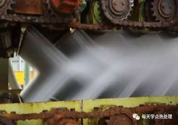 工件加熱之后進(jìn)行淬火處理,為了保證產(chǎn)品性能和減少變形開裂造成的廢品,有必要對淬火過程實(shí)施精確的控制。這也是這些年來熱處理淬火工藝裝備的發(fā)展方向。今后必將有更多的,針對特定工件的,能夠?qū)Υ慊疬^程實(shí)現(xiàn)精準(zhǔn)控制的專有裝備出現(xiàn)。制自動(dòng)控制涉及到冷卻速度、冷卻流場控制等方面,尤其是對于工件厚度差異大、處理工藝段數(shù)多和工藝段的時(shí)間變化大的情況,對生產(chǎn)控制系統(tǒng)也相應(yīng)地提出了更復(fù)雜的要求,人工控制工藝過程變得非常困難。對于工藝的確定和優(yōu)化,傳統(tǒng)試驗(yàn)方法顯然也是非常困難的。下面以某大尺寸工件冷卻處理為例,介紹了智能化大型塑料模具鋼自動(dòng)淬火設(shè)備的冷卻過程控制。這個(gè)工件需要經(jīng)過:空冷→噴水冷→噴霧冷→噴水冷一噴霧冷→噴水冷→鼓風(fēng)冷→噴水冷→鼓風(fēng)冷→噴水冷→鼓風(fēng)冷等多達(dá)十多段工藝,冷卻過程非常迅速,時(shí)間精度必須控制在毫秒以內(nèi)。