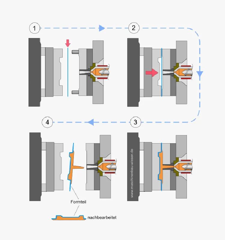 是將已印刷好圖案的膜片放入金屬模具內(nèi),將成型用的樹脂注入金屬模內(nèi)與膜片接合,使印刷有圖案的膜片與樹脂形成一體而固化成成品的一種成型方法。