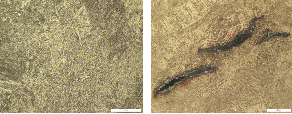圖9 齒環980℃真空正火100× 圖10焊接部位100×(U型裂紋)
