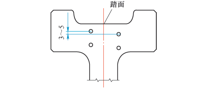 4)淬硬層深度的要求:測定淬硬層深度時,先將車輪切割開(用氣割時為了消除熱影響區,加工余量至少為20mm),再加工成徑向剖面試樣。從踏面(見圖2)開始用硬度計沿徑向每隔3~5mm測1點,測出硬度≥260HBW處的深度,即為淬硬層深度。