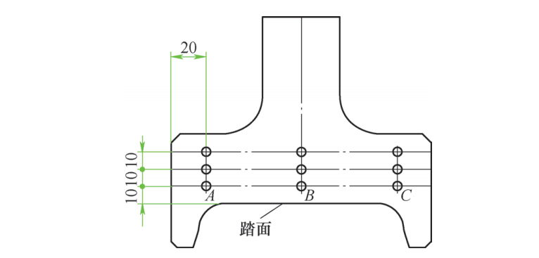 3)車輪踏面和輪緣內側表面硬度:車輪踏面和輪緣內側表面硬度檢驗時,用硬度計在車輪踏面上沿圓周等分測3點,其中2點硬度達到技術要求,即為合格。當某檢測點的硬度值不符合要求時,沿該點的軸線方向加測2點,如該2點硬度均達到技術要求即為合格。