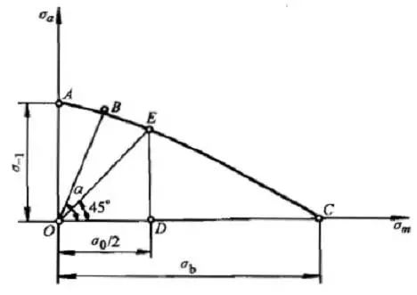 在不同應力比r 條件下將σmax表示的疲勞極限σr 分解為σa 和σm,并在該坐標系中作ABC曲線,則得到σa -σm 疲勞圖。