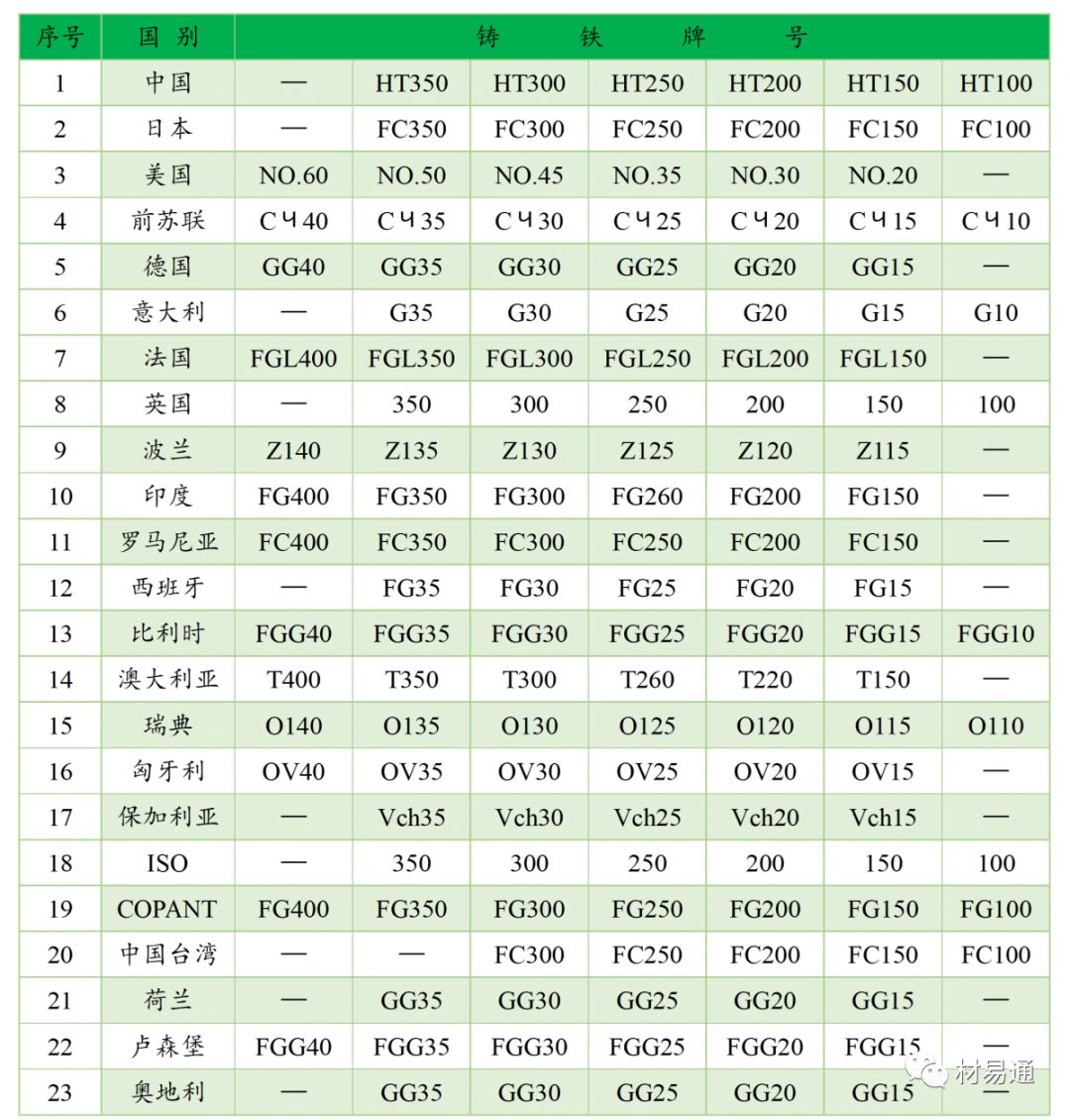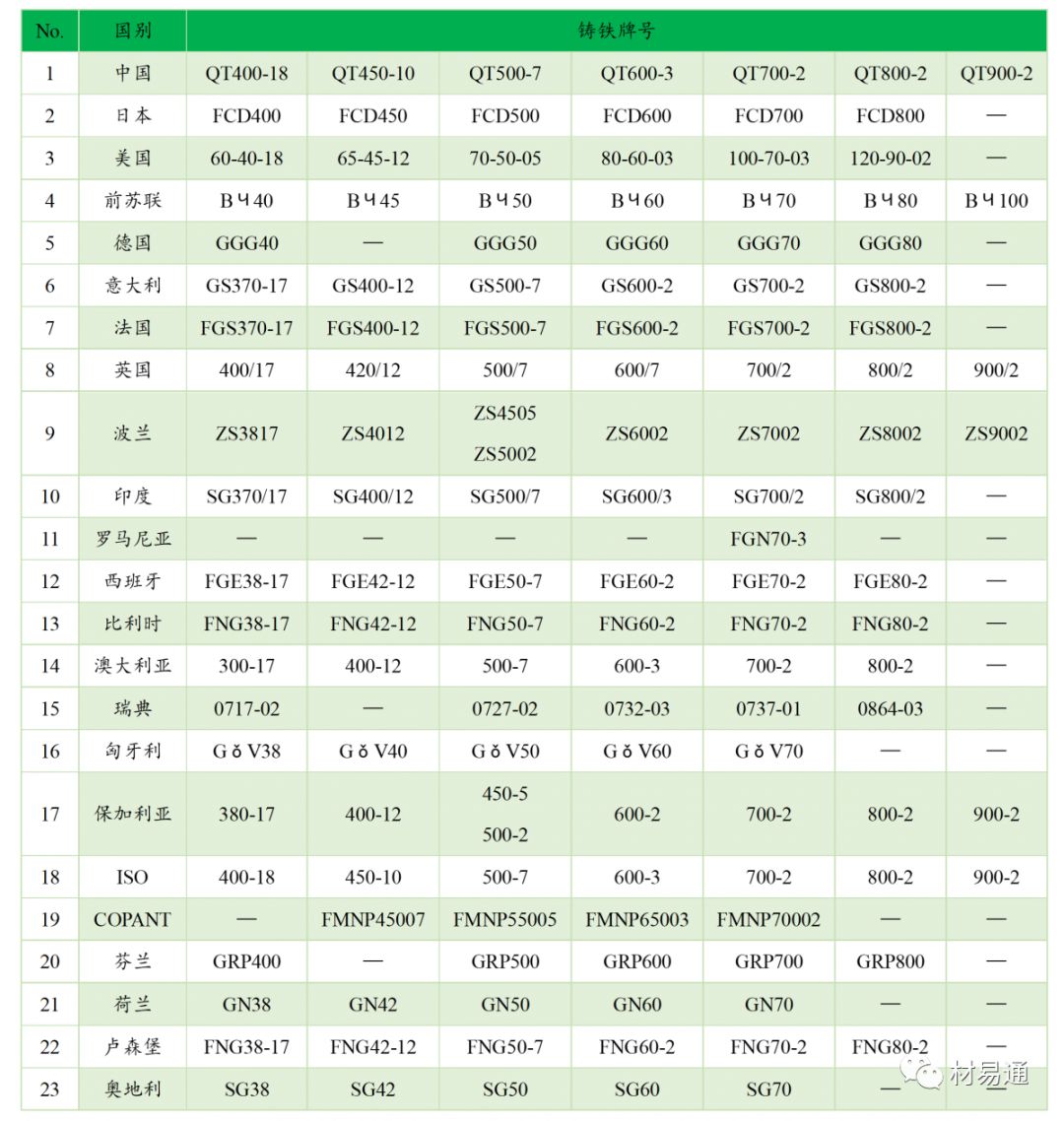 球墨鑄鐵中外牌號(hào)對(duì)照