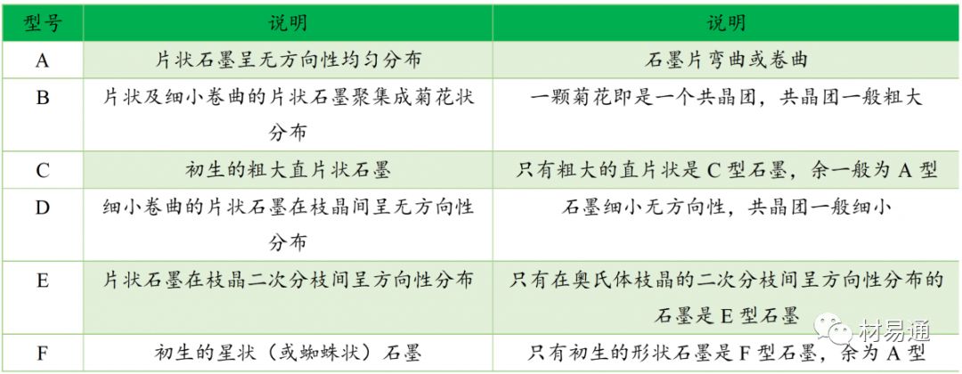 石墨分類示意圖(V型是團(tuán)狀,Ⅵ型是球狀)