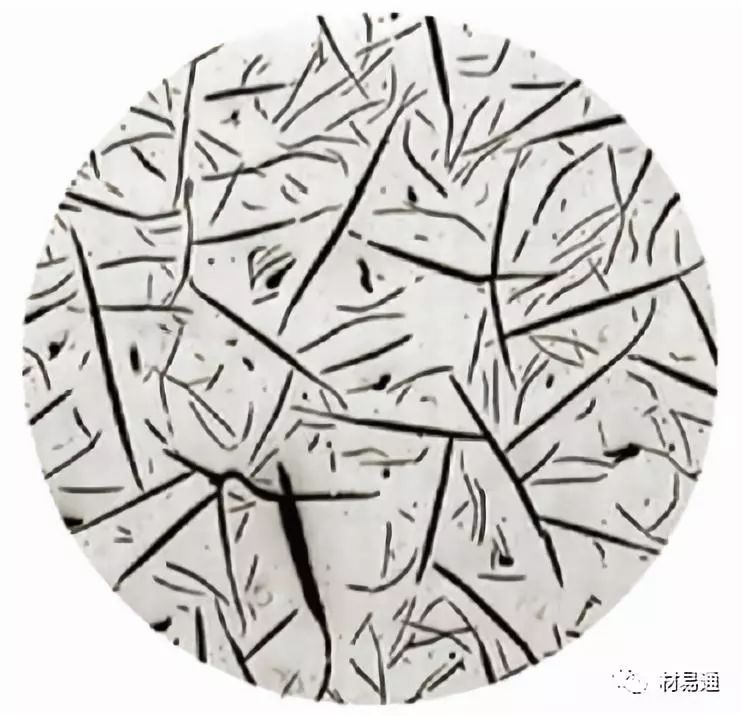 A型(直片狀)石墨是亞共晶灰鐵在較高共晶度(碳飽和度或碳當(dāng)量)且過冷度不大時(shí)的正常、均勻分布也是最常見的石墨組織,它對(duì)金屬的割裂作用較低同時(shí)具有這種石墨的鑄鐵珠光體含量高,故強(qiáng)度和耐磨性好。通常,A型石墨應(yīng)占石墨總量的90%以上。