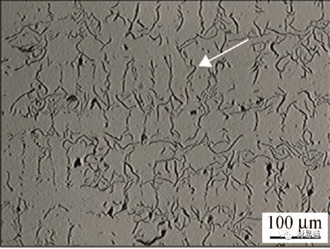 滲碳體在球墨鑄鐵中呈針狀、條狀或以萊氏體存在,易使球墨鑄鐵變脆,因此生產(chǎn)中應(yīng)盡量避免其出現(xiàn)。