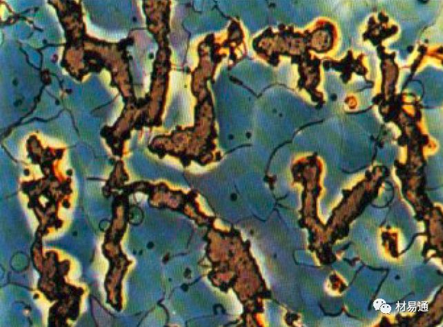 鐵素體多以分散分布?jí)K狀及網(wǎng)狀形式存在。
