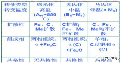 ① 不同溫度下轉變產物不同;