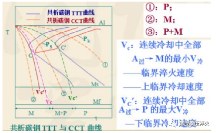 當 V > VC 時,A 過冷→M ;當 V<VC′時,A 過冷→P ;當 VC′< V <VC時,A 過冷→P +M