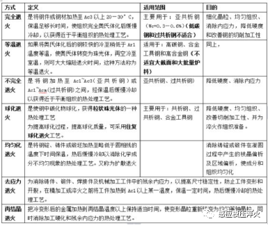 分類:臨界溫度以上:完全退火、均勻化退火、不完全退火和球化退火。
