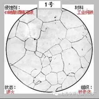 1、工業純鐵-退火-白色等軸晶為F晶粒,黑色網絡為晶粒之間的邊界。