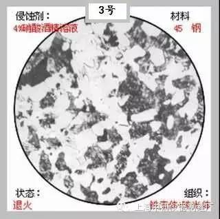 2、20鋼-退火-F+P,白色晶粒為F,黑色塊狀為片P。3、45鋼-退火-F+P,白色晶粒為F,黑色塊狀為片狀P。