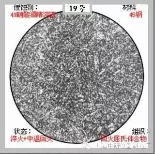 19、45鋼-860度水淬中溫回火T。回火T是從M分解出的F基體上分布極細粒狀Fe3C的混合物組合。