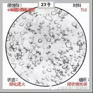 23、T12球化退火-球狀P。是F基體上分布顆粒狀Fe3C。白色為F基體,白色小顆粒為Fe3C。