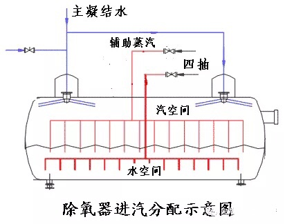 1、除氧器汽源:除氧器的加熱蒸汽有兩路汽源,分別為四抽和輔汽,四抽引入底部主要用于深度除氧和加熱給水;