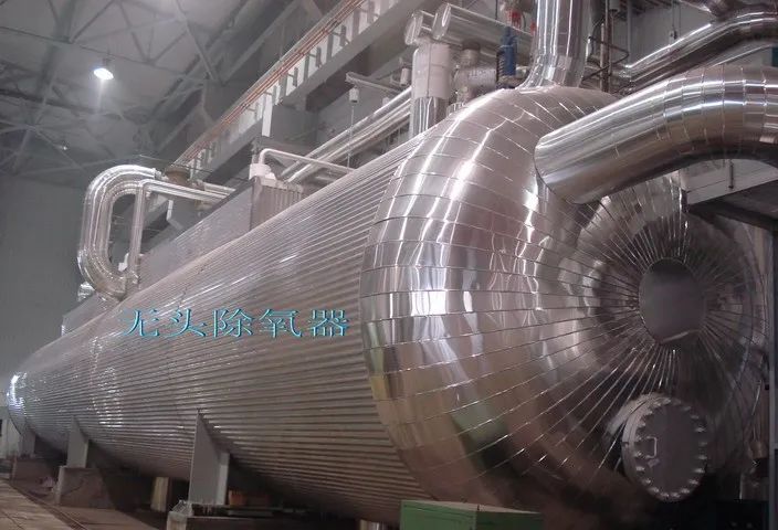 從總體上講,無頭除氧器是一臺典型的圓筒形臥式容器,內置噴頭、蒸汽分配裝置,儲存需要除氧的凝結水和排出已除氧的凝結水到鍋爐給水泵。