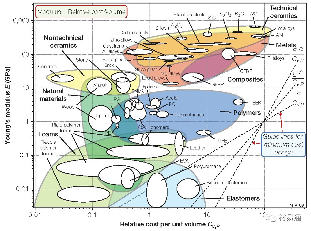 Young’s modulus vs. Relative cost per unit volume