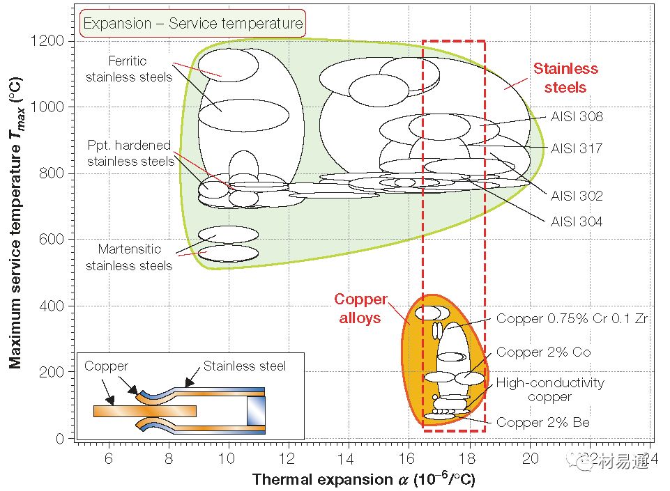 Thermal expansion vs. Maximum service temperature