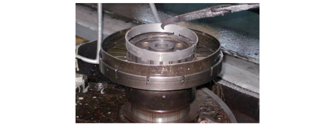 目前,內(nèi)環(huán)經(jīng)過碳氮共滲、淬火后,通常會(huì)發(fā)生以下的質(zhì)量問題:1)內(nèi)環(huán)碳氮共滲后產(chǎn)生嚴(yán)重變形,以至于熱處理后內(nèi)環(huán)內(nèi)徑尺寸由