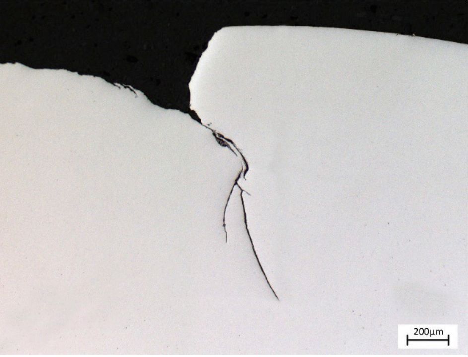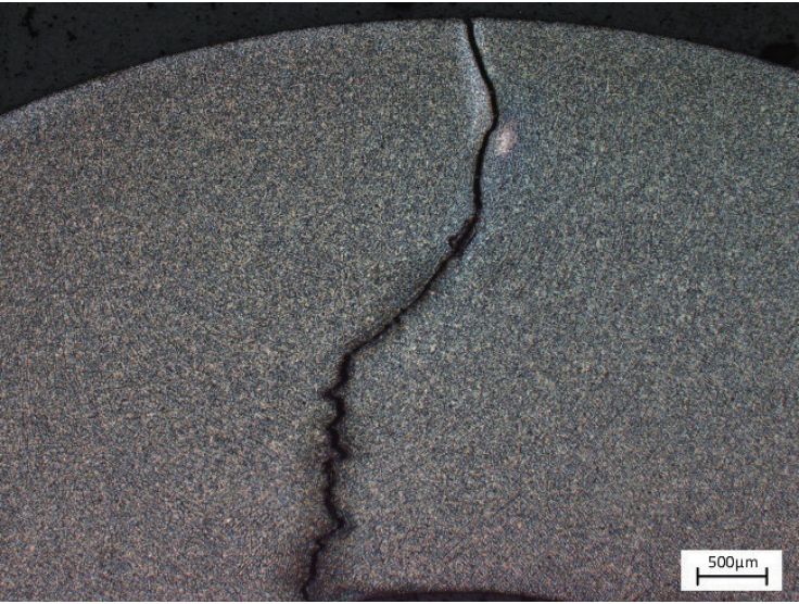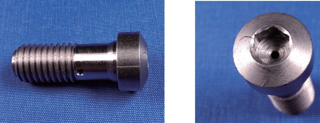經上述分析,可斷定螺栓在正確裝配過程中發生斷裂與螺栓圓柱頭部外表面的折疊缺陷有關。折疊的深度較大,甚至超過1/2壁厚,這顯著降低了螺栓可承載應力的有效截面積,而且易引起應力集中。在裝配扭矩扳手的扭轉作用下,折疊前端形成較強的拉應力,萌生線性裂紋源,并迅速向中心孔方向擴展,導致低應力脆斷。本文對裝配中斷裂的汽車噴油嘴螺栓油管做了斷口觀察、光譜分析、金相檢驗等試驗,探究了螺栓斷裂的產生原因,主要結論如下。(2)螺栓圓柱頭部外表面存在較深的熱加工折疊缺陷,是導致螺栓異常斷裂的根本原因。(3)螺栓制造商需合理優化熱成形工藝,避免類似折疊缺陷的產生,同時加強質量檢驗,杜絕問題件出廠。