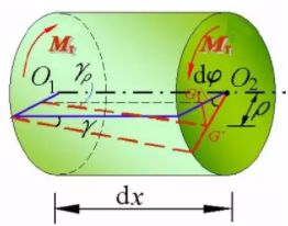 設(shè)到軸線任意遠ρ 處的剪應(yīng)變?yōu)?em style="max-width: 100%; box-sizing: border-box !important; overflow-wrap: break-word;">γ(ρ),則有如下幾何關(guān)系: