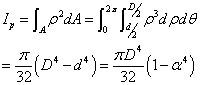 微分面積: dA 上的微內(nèi)力對圓心的力矩: 對上式進行積分(扭矩定義): 橫截面上的扭矩應(yīng)與截面一側(cè)的外力偶距相平衡 我們引入一個極慣性矩 式中,Ip 為橫截面對形心的極慣性矩(截面二次極矩,單位為m4)。 在圓截面邊緣上有最大切應(yīng)力: 令 抗扭截面系數(shù)(單位:m3) 公式適用條件: 圓桿; τmax≤τp。 其中極慣性矩和抗扭截面系數(shù),在實心軸與非實心軸中的計算是不一樣的。 在實心軸的情況下: 其中,D 為圓截面直徑。 以上就是完整的求圓軸扭轉(zhuǎn)時的應(yīng)力的方法和過程了!