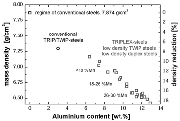 低密度Fe-Mn-Al-C鋼中Al含量對密度降低的影響