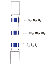 1 試驗設備與試驗方法 1.1 試驗設備 根據ASTM E1012—2014,4個應變片位于試樣棒的不同方位的同一層,總共8片或者12片應變片布置在試樣棒的第2層或者第3層,如圖1所示。 圖1 ASTM同軸度標準試樣棒示意圖 用于檢測同軸度的裝置包含標準試樣棒和12通道數采系統和分析軟件。這套裝置由德國ZwickRolle集團制造提供。 用一臺精度等級為0.5的50kN的材料試驗機來執行此次的比對試驗。多通道數采系統為QuantumX type MX1615B型多通道數采系統,激勵電壓為10V全橋設置。該設備一共有12路通道,對應于標準試樣棒上的12片應變片。 根據中國檢定規程JJG 475—2008《電子試驗機檢定規程》和JJG 556—2011《單軸疲勞試驗機檢定規程》,同軸度檢定裝置是一套雙引伸計。雙引伸計顧名思義就是有兩個引伸計。一個安裝在被檢試棒的左側,而另一個安裝在右側。引伸計是用來測量在拉伸過程中試棒的延伸量。如果試驗機的同軸度是理想的話,那么理論上說兩個引伸計測出來的試棒的延伸量是一樣的。 1.2 試樣棒制備 試樣棒的具體信息見表1,試樣棒尺寸如圖2所示。 表1 試樣棒的信息 圖2 試樣棒的尺寸示意圖 1.3 試驗方法 1.3.1 根據美標ASTM E1012—2014 (1) 把標準試樣棒上端夾持住,信號清零,然后夾持下端。機器先施加一個很小的力,檢查所有12路信號是否正常反應,然后卸載。 (2) 平穩驅動機器施加到機器滿量程的4%,6%和8%,也就是2kN,3kN和4kN。計算機軟件會分別記錄在這3個載荷點時候的信號數據并進行分析計算。(美標原版上要求施加滿量程的10%,20%和40%,為方便比對,該次試驗只加載到滿量程的4%,6%和8%)。 (3) 把載荷卸載到0,將標準試樣棒轉到180°位置,然后按照上述步驟再一次操作。 (4) 把載荷卸載到0,將標準試樣棒從180°方位轉回到初始位置,然后按照步驟2再一次操作。 1.3.2 根據中國檢定規程 (1) 把試樣棒兩端都夾持住。 (2) 加載一個力(機器滿量程的0.5%),然后把雙引伸計對稱安裝在試樣棒上,如圖3所示,驅動機器到滿量程的1%載荷,然后把信號清零。平穩驅動機器加載到滿量程的10%,這個過程稱之為預加載。如此重復3次。 (3) 把載荷卸載到0,然后加載到1%載荷,并且把雙引伸計信號清零。然后平穩加載到機器的4%,6%和8%,記錄所有數據。(原本是加載到4%,6%,8%和10%,為方便地對該次試驗簡化為4%,6%和8%)。 (4) 把雙引伸計拆卸,然后更換位置到如圖3所示處。重復步驟2和3的操作。 圖3 雙引伸計的位置示意圖 2 數據分析 根據美標ASTM E1012—2014,按柱狀標準試樣棒的計算公式計算出了中間一層應變片的數據,見表2。可見得到的最小的彎曲度數據為10.7%,在加載力為4kN(機器50kN的8%載荷點)時得到。 表2 ASTM標準試樣棒中間層應變片的數據 根據中國規程的計算公式,計算出了同軸度的數據,見表3。 表3 采用中國檢定規程測得的同軸度數據 對比表2和表3可知,采用美標測得的彎曲度數值幾乎是采用中國檢定規程測得的同軸度數值的兩倍。 3 討論 對于同軸度的定級,美標和中國檢定規程是不同的。美標只提同軸度等級,而不是試驗機的等級。而中國規程規定不同精度等級的試驗機對應不同等級的同軸度指標。美標定級為5,8,10級,對應的彎曲度為5%,8%,10%;中國檢定規程定級為0.5,1,2級,對應的同軸度為12%,15%,20%。 該次試驗并沒有按照美標要求施加足夠的載荷,因而不能得出結論說彎曲度10.7%就不滿足試驗機等級10級。該次試驗的同軸度表明試驗機滿足0.5級,因為同軸度10.3%,符合標準要求的12%。 另外一個討論點是關于計量溯源。ASTM E1012—2014上說:“標準試樣棒的計量溯源并不做要求,但在加工制造標準試樣棒的時候要非常注意和小心。”這意味著,只有多通道數采是需要校準溯源的。 對多通道數采進行了校準,具體數據見表4。標準值和顯示值之間的偏差小于-0.3%,這是相當理想的。 表4 多通道數采校準數據 中國檢定規程的雙引伸計的校準很容易,只要用標準引伸計(微分尺)對這兩個引伸計逐一進行計量校準就好,可以溯源到長度基準。也就是說,中國檢定規程的同軸度裝置完全可以計量溯源。 4 結論及建議 美標和中國規程的同軸度檢測的主要區別在定級標準、裝置(試樣棒)及操作方法過程和計量溯源等方面。 姜虹等人認為美標對于同軸度的檢驗方法更加全面完整,但缺乏完善的計量溯源方式。而中國檢定規程的優點在于易操作,同時能保障計量溯源。但是雙引伸計法具有先天的不足,即不能同時保障試樣棒在全方位反映出試驗機同軸度。 中國的金屬材料拉伸試驗方法標準GB/T 228.1已經到了修訂階段,建議此標準的修訂者關注同軸度檢測技術的發展趨勢。 作者:姜虹,沈琪,黃偉軍 作者簡介:姜虹(1988-),女,工程師,主要從事計量檢測相關工作。 單位:1.上海市質量監督檢驗技術研究院;2.GTM計量測試技術(中國)辦事處 來源:《理化檢驗-物理分冊》2021年第6期