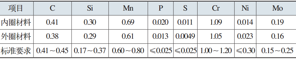 表2 變槳軸承材料成分(質(zhì)量分?jǐn)?shù)) (%)