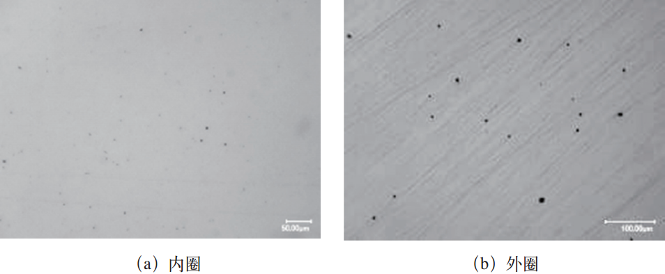 軸承套圈金相試樣拋光后未浸蝕的金相組織如圖11所示,可見其夾雜物主要為球狀(D類)細(xì)系,可評為1.0~1.5級。GB/T 29717—2013中對42CrMo軸承套圈材料要求D類非金屬夾雜物不超過1.0級。可見失效軸承套圈材料中的非金屬夾雜物略有超標(biāo)。
