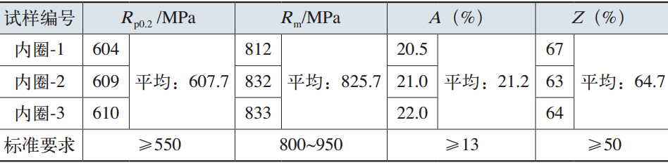 表6 變槳軸承內(nèi)圈材料的室溫拉伸性能(20℃)