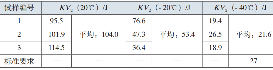 表7 變槳軸承內(nèi)圈材料的沖擊性能