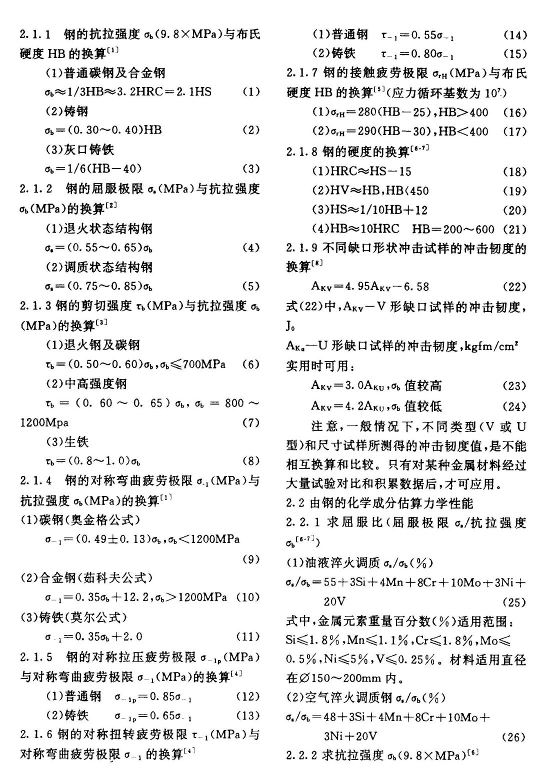 【摘要】本文主要收集整理出了鋼的力學性能及熱處理工藝經驗公式73個。實踐證明,所列公式具有計算方便、實用性能、可靠性能、誤差率小(≤土10%)的優點。應用經驗公式,可以為機械零件技術設計和制定熱處理工藝規范,提供重要的參考依據,是建立鋼的力學性能及熱處理柔性系統(FCM)數據庫的首要前期工作之一。