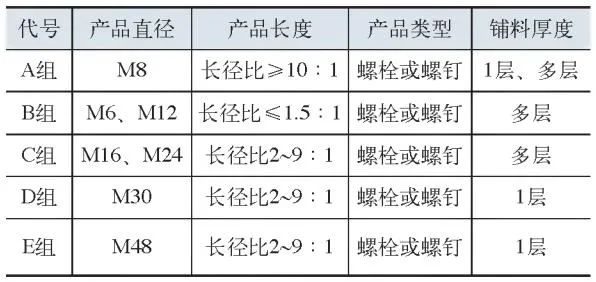 (1)測試分組根據緊固件的典型特點進行分組,共分5組。