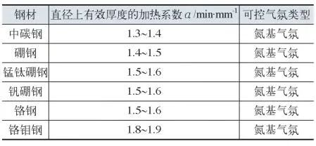 式中t加熱時間(min),工件進入預熱區加熱到掉入淬火槽的時間,不包括工件在淬火爐進料口網帶上的運行時間;