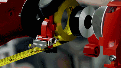 在卷尺堅(jiān)硬的塑料外殼下,26個(gè)部件協(xié)同工作,