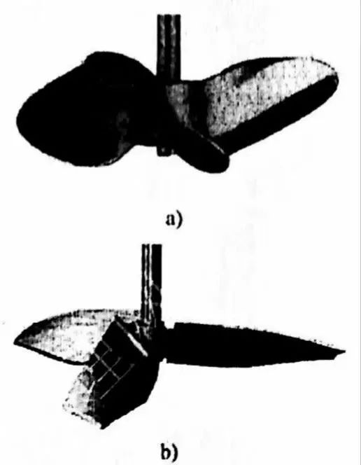 常用的開式攪拌器是軸流式螺旋槳,如圖4所示的船用螺旋槳。