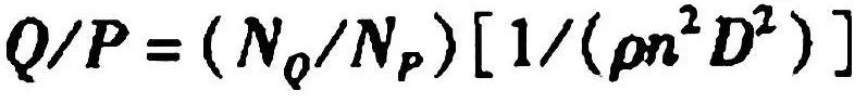 在流量和轉速恒定的情況下,單位體積功率下流量Q/P值用下式表示: