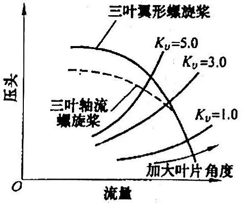 ▲圖8 軸流式螺旋槳和翼形螺旋槳的壓頭-流量曲線