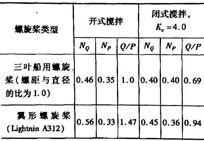 ④當采用閉式攪拌時,螺旋槳直徑要減小3%。