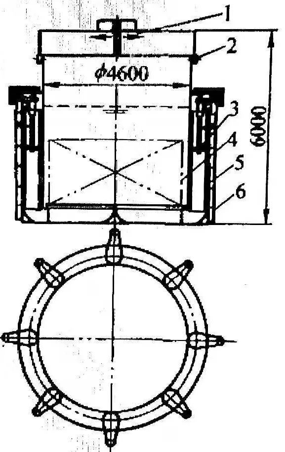 1-均流板 2-導流筒 3-螺旋槳 4-攪拌器 5-工件 6-淬火槽