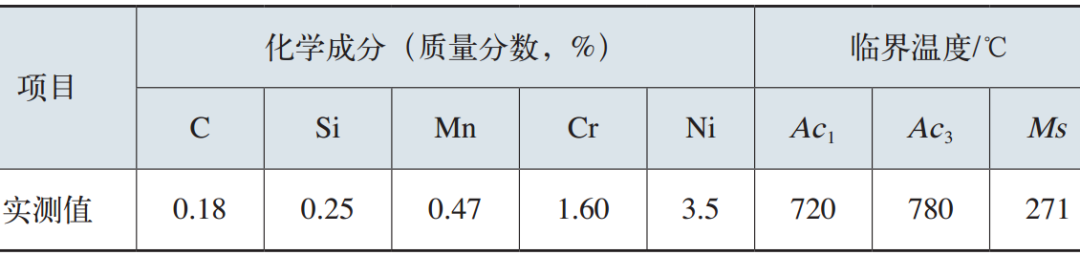 ①RJJ-90井式滲碳爐,有效尺寸φ600mm×900mm,最高工作溫度950℃,加熱功率90kW,最大裝爐量500kg。②Aichelin轉爐,有效尺寸φ400mm×70mm。表1 20Cr2Ni4A齒輪材料的主要化學成分與臨界點
