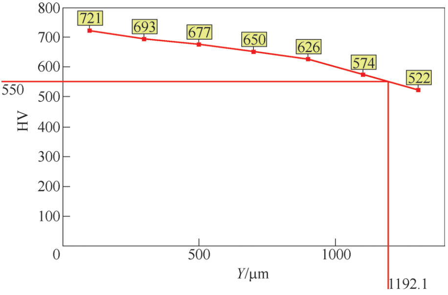 (2)表面硬度。在齒圈的花鍵齒面和端面檢測硬度在60~61HRC,其中齒面硬度稍高。