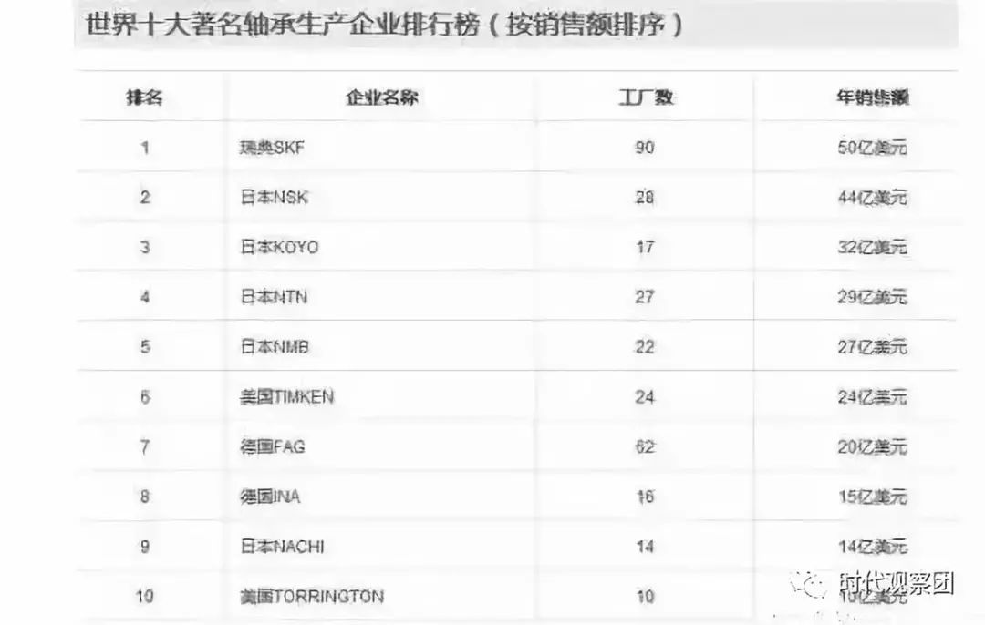 小編沒有找到最新的排行榜,但是整體的趨勢是沒有變的,軸承還是日本、瑞典、德國的天下。軸承在工業領域的發揮的重要作用和對材料學的要求,內行都懂。