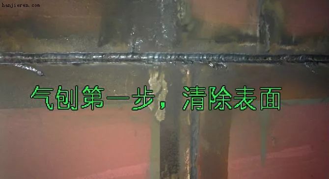 二、深度清理,仔細刨除加在焊縫中間的焊渣,氣孔。刨到焊縫成銀白色,無缺陷為止。