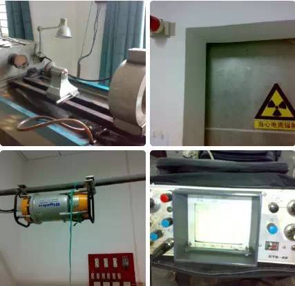 第一行左起一:固定式磁粉探傷機;第一行左起二:射線檢測室的防護屏蔽門。
