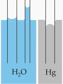 如果液體不能潤濕毛細管,則液體在細管降低。例如水銀(Hg)在玻璃毛細管內(nèi),液面是下降的。