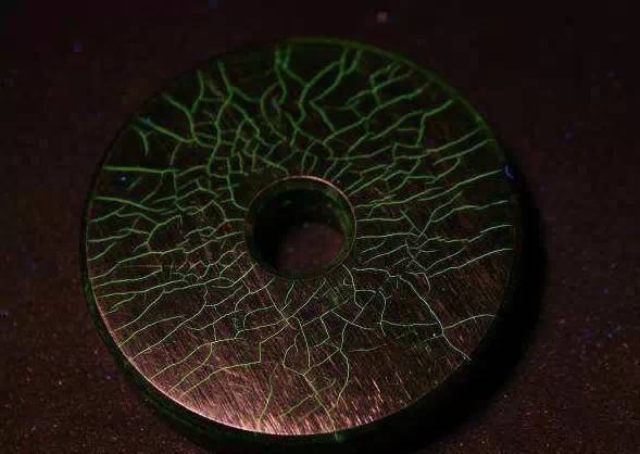 典型的熒光滲透檢測缺陷示意圖。(圖片來源于網(wǎng)絡(luò))